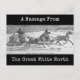 Vintage Schwarz-Weiß-Illustration aus den 1800er Jahren "Canadian Backwoods Mail" Zwei Pferde zeichnete Schlitten über den Schnee mit Bündeln von Post und Packungen Set auf schwarzem Hintergrund mit weißem Text, der "eine Nachricht von", "der große weiße Norden" Text kann mit Ihrer eigenen Nachricht personalisiert werden