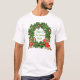 Feierliche Feiertage aus Kanada und Kanada. Hübsche Gold- und Rotwände haben heilige Scrollecken. Schneebedeckter Hintergrund mit heiligem Kranz und kanadischer Biberflagge vor rotem Mapleleaf. Text sagt: Frohe Weihnachten Eh!