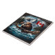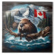 Kanadischer Biber am See Mit Bergen und Flagge Fliese