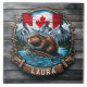 Kanadischer Biber mit Fahne und Bergen bei Sonnenu Fliese