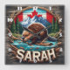 Kanadischer Biber mit Wasser mit Bergen und Bäumen Quadratische Wanduhr