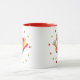 Kaffee-Tasse mit meinem Design eines niedlichen kleinen Truthahns, der eine kanadische Fahne trägt, mit Ahorn-Blätter, die ihn umherfliegen.