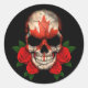 Kanadischer Flaggenschädel mit Rote Rosen Runder Aufkleber