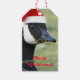 Geschenkmarken für Ihre Urlaubsgeschenkpackung, die das skurrile Foto eines Kanadengas mit einer roten Weihnachtsmannmütze und holzbeerigen Halskette enthalten. Ein lustiges, tierisches Design für den Urlaub! Wählen Sie Ihre Garnfarbe aus.