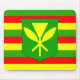 Kanaka Maoli, wahrscheinlich die ursprüngliche Flagge vom Königreich von Hawaii. 8 Streifen, die die 8 Inseln von Hawaii darstellen. Die Mitte ist ein grünes Schild, das Wappen von Kanaka Maoli mit dem kahili, der königliche hawaiische Standard.