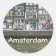Ein Kanal in Amsterdam mit den typisch niederländischen Kanalhäusern im Hintergrund.