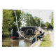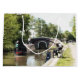 Ein Kunstdesign eines Schmalschiffes, das sich einer Schleuse nähert, und eines Mannes, der angeln will. Die im Vereinigten Königreich als Schmalboote bekannten Kanalboote wurden ursprünglich zur Beförderung von Gütern im ganzen Land eingesetzt. Sie werden heute hauptsächlich zur Freizeitgestaltung genutzt und ziehen Menschen aus aller Welt an, um unsere ländliche Umgebung zu genießen. Diese Boote sehen sehr hübsch mit ihren hellen Kabinen aus, die traditionell blau, rot oder grün sind. Blume und Schlossdesigns schmücken auch die traditionelleren Boote.