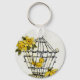 Niedlicher, gelber Kanarienvogel in einem altmodischen Käfig mit gelben Dafodills. Großartiges Design für jede Art von Anlässen.
