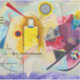 Aufkleber mit Wassily Kandinskys Bild Gelb-Rot-Blau (1925). Abstrakte Darstellung geometrischer Formen und Linien, die mit spielerischen Primärfarben gefärbt sind. Ein nachdenkliches Geschenk für russische Kunstsammler und Fans abstrakter Kunst!