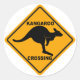 Traditionelles Känguru Kreuzschild, wie im australischen Outback gesehen. Gelbes und schwarzes diamantförmiges Warnzeichen.