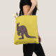 australische Känguru-Silhouette im Stammes-/Ethnemmosaikmuster auf gelbem Hintergrund