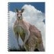 Foto eines männlichen Kängurus auf dem Hintergrund des blauen Himmels und der puffigen Wolken.