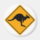 Klassisches Känguru Warnzeichen ohne Text. Diamantförmige Straßenschilder in Gelb und Schwarz.