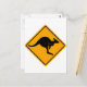 Klassisches Känguru Warnzeichen ohne Text. Diamantförmige Straßenschilder-Grafik in Gelb und Schwarz.