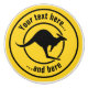 Gelbe Känguru-Silhouette. Vector Symbol mit eigener Farbe. Benutzerdefinierte Hintergrundfarbe. Zwei Textfelder im Kreis.