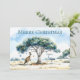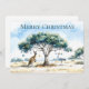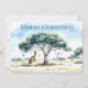 Ein Weihnachtskänguru und eine Emu, die unter einem mit Bauern dekorierten Gummibaum sitzen. Frohe Weihnachten Gruß vor Frohe Weihnachten und glückliche Neujahr grüßen innen