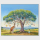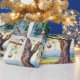Ein Weihnachtskänguru, der unter einem mit Bauern und Tinkel dekorierten Gummibaum sitzt.