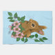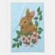 Ein niedliches braunes Hasen sitzt zwischen rosa Blume in hellblauer Umgebung