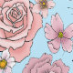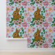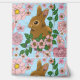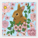 Ein niedliches braunes Hasen sitzt inmitten von rosa Blume in hellblauer Umgebung