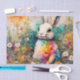 Ein wunderschönes, weißes Kaninchen in einer farbenfrohen Wildblume-Wiese AI generiert Kunst, die perfekt für Ihre Dekoupage Projekte ist