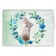 Ein bezauberndes Aquarellkaninchen blickt zurück, während er in einem hübschen blühenden Kranz sitzt. Das Bild wird auf einem hellgrünen Aquarellhintergrund platziert. Nützlich für persönliche Grüße und viele Anlässe. Die Innenseite ist leer für Ihre eigene Nachricht.