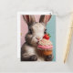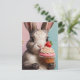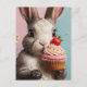 Ein hübsches graues Kaninchen mit Erdbeerkuchen KI erzeugte eine bezaubernde Kunst