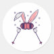Kaninchen mit Skistöcken und Skibrille Runder Aufkleber