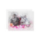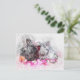 Schönes Aquarelldesign eines schwarz-weißen Kaninchens, das auf rosa abstrakten Blume sitzt.