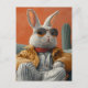 Ein Kaninchen sitzt auf einer Couch mit gestreiftem Outfit und einer gelben Jacke Fantasiekunst