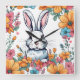 Kaninchen umgeben von Blume Quadratische Wanduhr