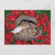 Sandy Flemish Riesengeblasenes in einem hohlen Holzgeländer umgeben von poinsettias Foto Weihnachtspostkarte