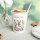 Osterpapiertassen mit einem Kaninchen mit Kirschblüten und Ostereiern. Personalisierbar.