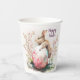 Osterpapiertassen mit einem Aquarellkaninchen mit Blume und einem Ostereier.