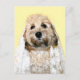 Poodle mischen Hund mit einem Schleier Foto. Könnte eine Braut, eine Brautjungfrau sein, eine Bitte "Werden Sie meine Brautjungfrau sein?", auf einer Strecke "Save the Date"