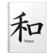 Kanji-Friedenssymbol in Schwarz Notizblock