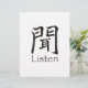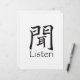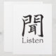 Das japanische Kanji-Symbol für das Wort "Hören" wird in kalligraphischen Pinselstrichen gezeigt und sieht sehr cool auf einem Hemd, einer Tasche, einer Kappe oder einem Knopf aus. Wir haben sogar die englische Übersetzung hinzugefügt, sodass die Leute die Nachricht bekommen. Das Design für das Zeichen basiert auf einem Gateway mit einem Ohr im Inneren. Hübsch cool! Sie können die Hintergrundfarbe ändern und auch Text hinzufügen.