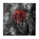 Das japanische Kanjiskriptsymbol für den Wortsamurai gegen eine rote Sonne fügt orientalisches Aufflackern dieser schwer Schmutz-ähnlichen Texturgrafik hinzu.