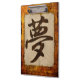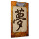 Kanjicharakter für Traum auf altem Pergamentpapier mit einem schönen und eleganten Hintergrund des Rot- und Grungegoldes. Sehr holt Zen wie digitale Kunst eine Richtung des Friedens und der Ruhe in Ihren Leben- und Arbeitsraum!