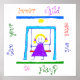 Kann dein Kind draußen spielen? Spaß Poster, um uns daran zu erinnern, Spaß in unserem Leben zu haben! Niedliches Kind, das von einem kleinen Mädchen zeichne, das auf einer Schaukel spielt.