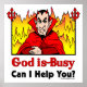 "Gott ist beschäftigt, kann ich dir helfen?" - Ein lustiges und humorvolles Sprichwort mit einem Teufel / Satan Grafik. Funny Religious Spaß Design.