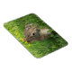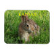 Eine Nahaufnahme eines Bunny Rabbit in grünem Gras in Hutchinson Kansas USA, das hell und bunt ist. Das ist auf einem Square Magnet.