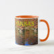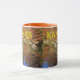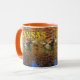 Ein Foto von farbenfrohen Herbsturlaub ist auf den Bald-Cypress-Bäumen, die hell und bunt sind. Mit Reflection's im Wasser in Hutchinson Kansas USA. Das ist auf einer TASSE.