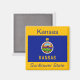 Ein echtes Bild in feiner Qualität des Kansas-Set zwischen dem Namen des Staat und dem Spitznamen über einem farbigen Hintergrund.