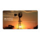 Eine goldene Windmühle Sonnenuntergang-Silhouette mit leuchtend orangefarbenem Himmel, mit Wolken und einer Windmühle, die hell und farbenfroh ist und auf einem Shipping Label steht.