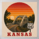 Diese Vintage-Poster im Kansas-Stil zeigt die ikonische Rainbow Bridge entlang der historischen Route 66 und fängt einen strahlenden Sonnenuntergang über einem der bekanntesten Wahrzeichen des Mittleren Westens ein. Warme bernsteinfarbene Himmel, subtile Kornstrukturen und detailliertes Blattwerk erzeugen eine nostalgische, retro Reisestimmung voller Tiefe und Charakter. Die gekrümmte Straße und der klassische Betonbogen rufen den zeitlosen Charme amerikanischer Roadtrips hervor. Perfekt für Route 66-Enthusiasten, Kansas-Einheimische und Sammler historischer Americana-Kunst.