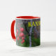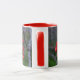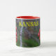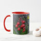 Ein Foto von Red Berries mit einem grünen Hintergrund, der im Herbst im Naturzentrum Dillon in Hutchinson Kansas USA hellfarbig an einem Baum hängt. Das ist auf einer TASSE.