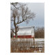 Ein Bild eines Roten Landhauses mit Schnee und Baumhirnen und blauem Himmel. Das ist nördlich von Hutchinson Kansas USA im Land. Das ist hell und farbenfroh. Das ist eine Poster/Foto-Erweiterung.