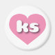 Dieser Magnet zeichnet sich durch ein lebhaftes rosa Herz aus, das die fett-, weiß-, abgerundeten Kleinbuchstaben ks enthält, eine spielerische Abkürzung für Kansas, den Sonnenblumen-Staat.