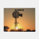 Ein Foto einer Windmill Sunset Silhouette mit Baum s und einem Golden Sky. Das ist nördlich von Hutchinson Kansas USA im Land. Das ist auf einer TÜR-MAT.