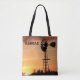 Ein Bild eines Windmill Sunset mit bunten Wolken, das nördlich von Hutchinson Kansas USA im Land ist. Das ist auf einer Tote-Tasche.